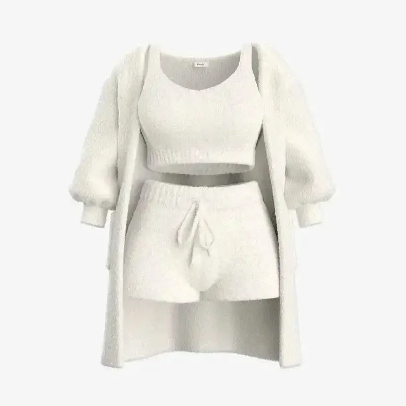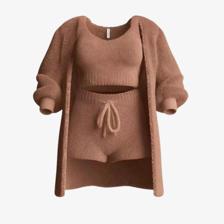 De dubbel gebreide bouclé stof biedt precies genoeg warmte voor koelere dagen, terwijl het ademende materiaal zorgt dat u niet oververhit raakt. Ideaal voor ontspannen momenten in huis.